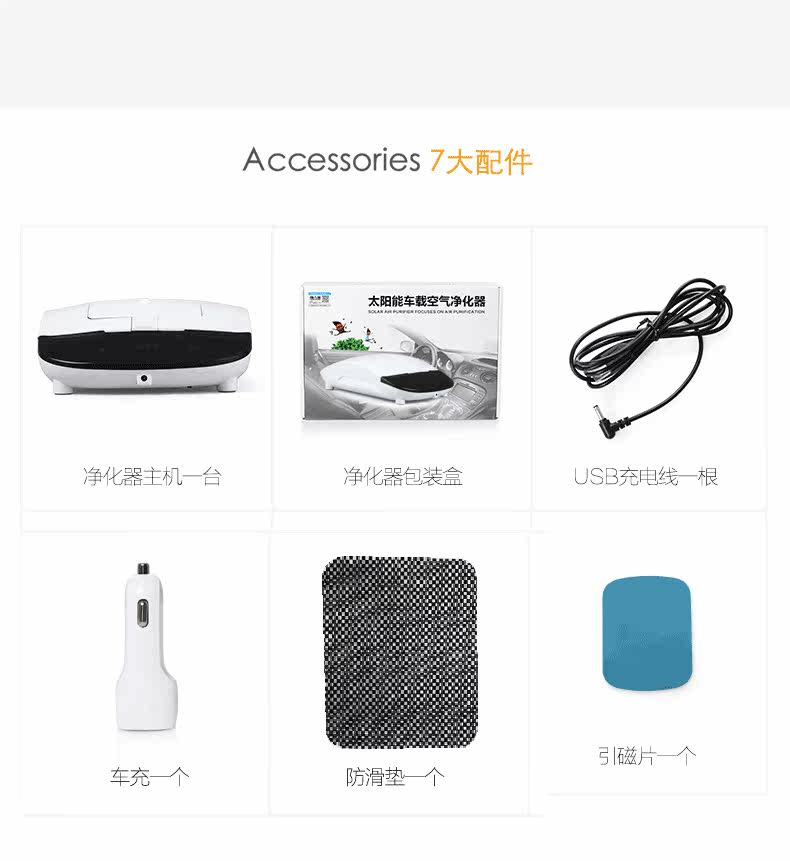 [励志优品空气净化,氧吧]小千喵太阳能车载空气负离子净化器汽车月销量0件仅售299元