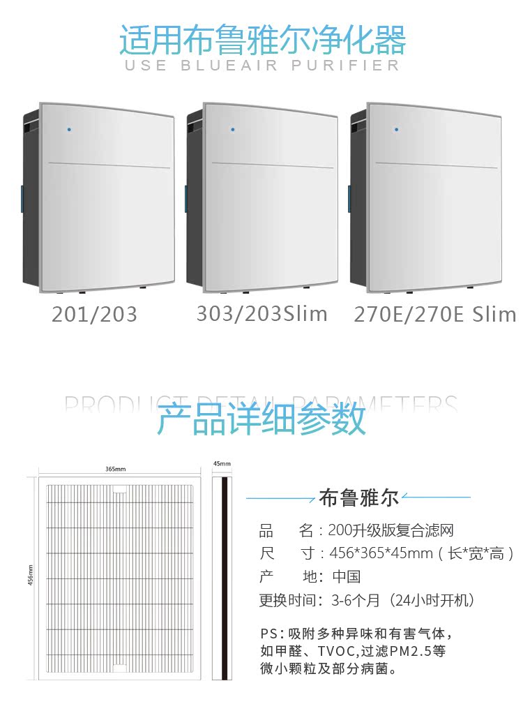 适配布鲁雅尔201 303 203 270E空气净化器过滤网复合SmokeStop芯