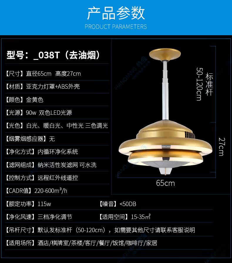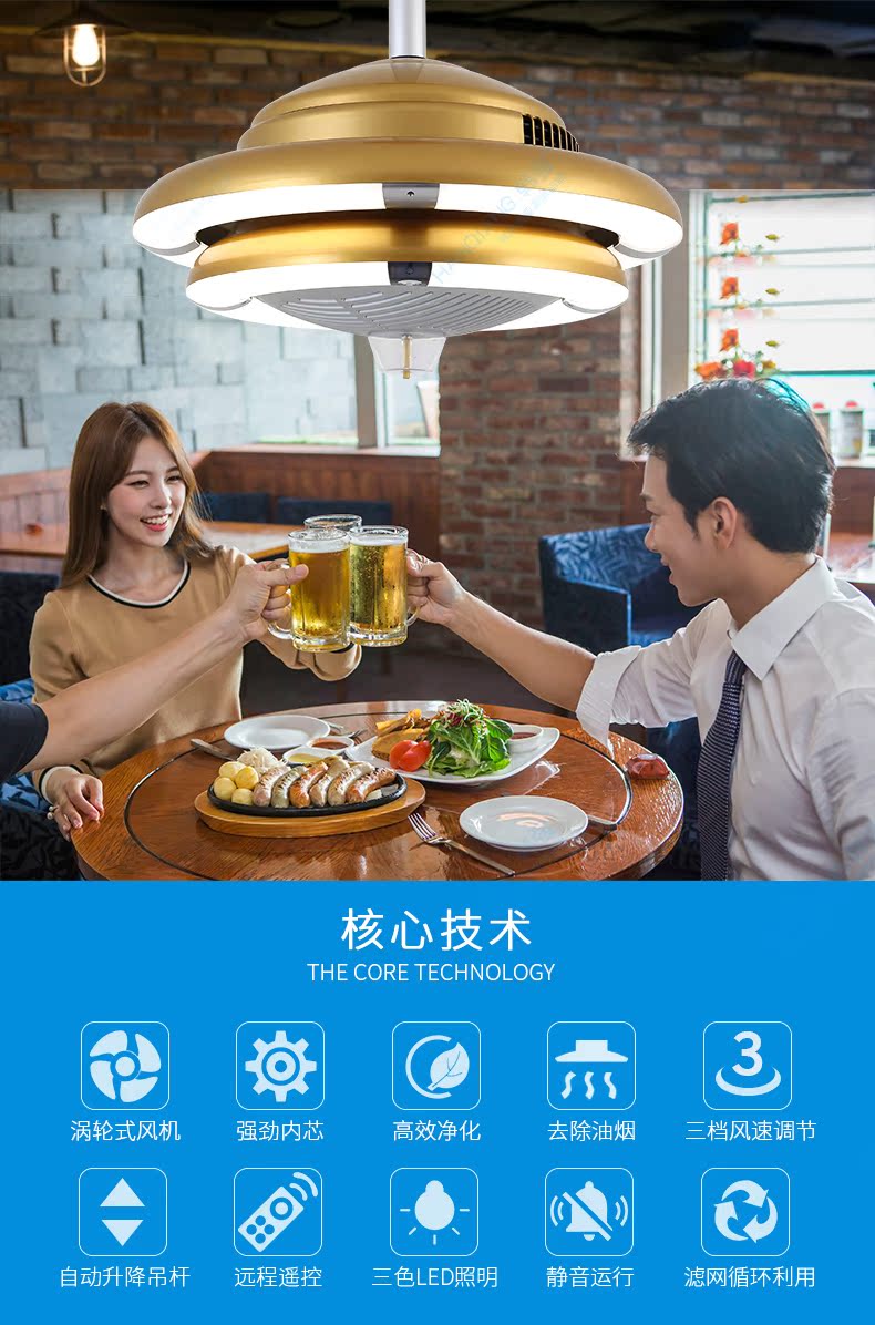 棋牌室空气净化器麻将馆吊灯净化器餐厅吊灯净化灯厨房去油除烟