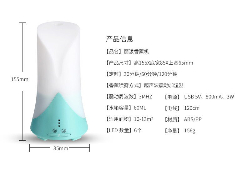[芷兰香薰生活馆加湿器]香薰加湿器USB迷你超声波香薰夜光灯月销量1件仅售99元
