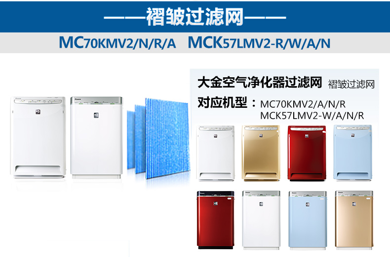 大金空气净化器褶皱过滤网MCK57LMV2-W滤芯纸清洁配件通用