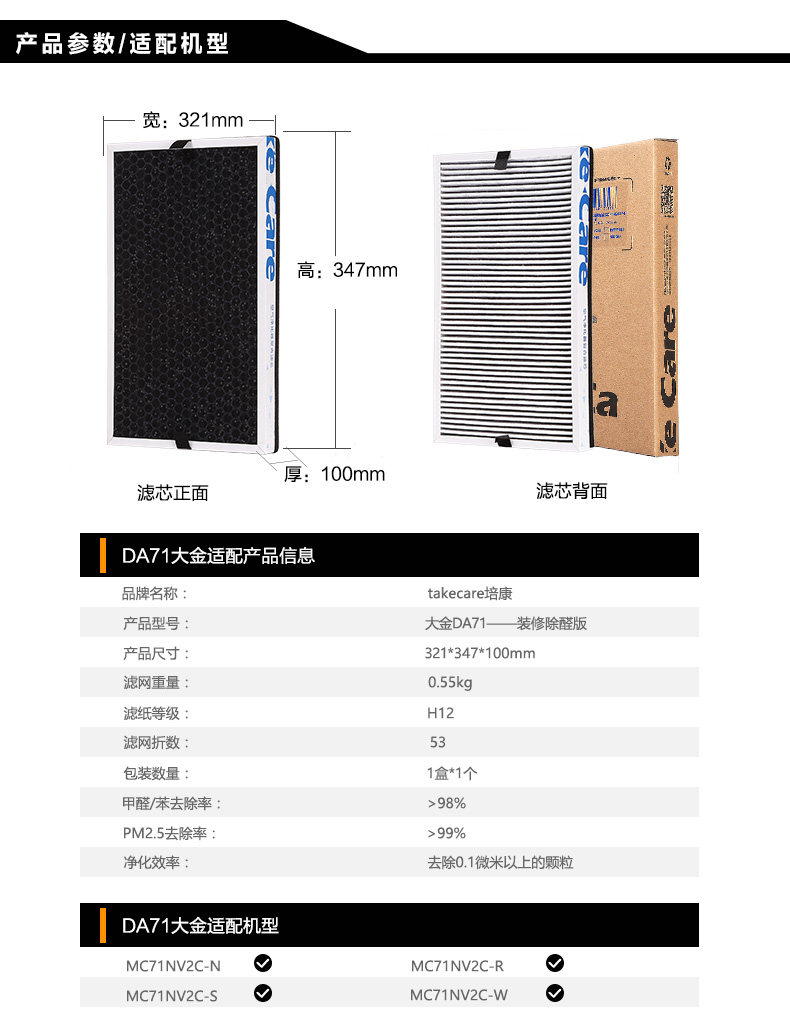 [takecare培康旗舰店净化,加湿抽湿机配件]培康适配大金空气净化器过滤网MC71月销量0件仅售268元