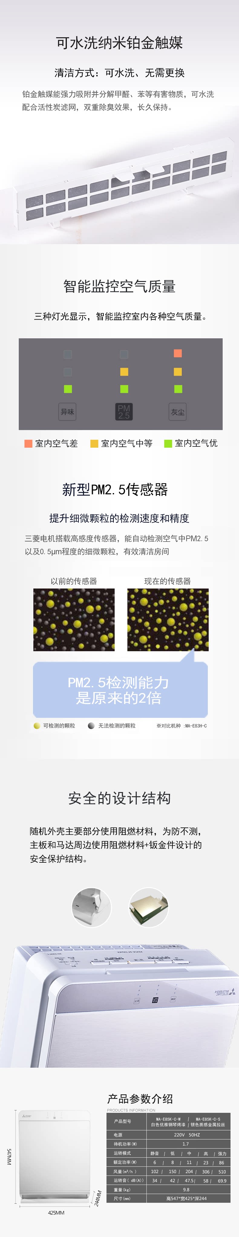 包邮 日本原装进口 三菱电机空气净化器MA-E85K-C家用除pm2.5甲醛