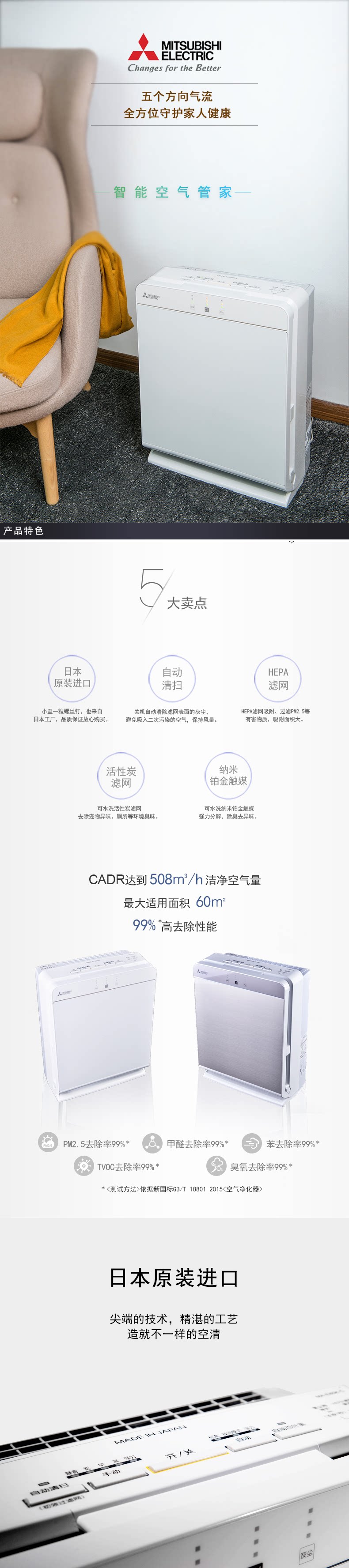 [中国阜康家居空气净化,氧吧]包邮 日本原装进口 三菱电机空气净化月销量0件仅售6500元