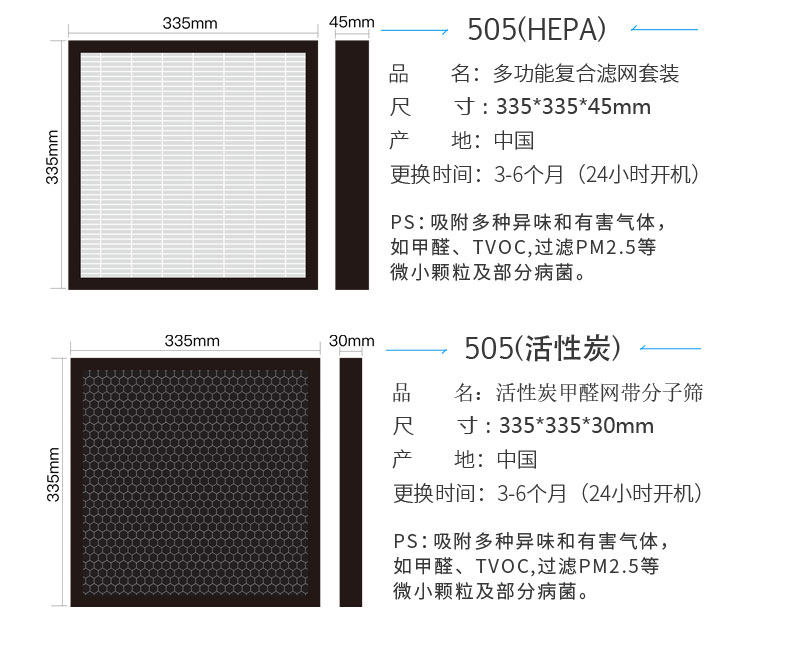 适配三星AC-505MAGA AC-505MASC空气净化器过滤网滤芯2片套装