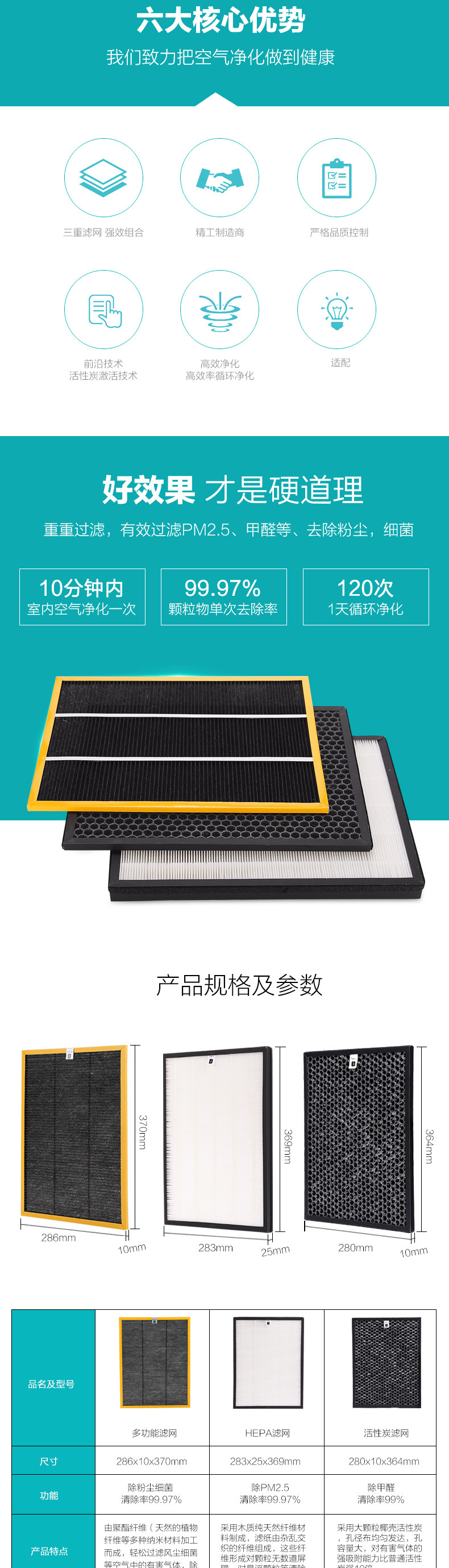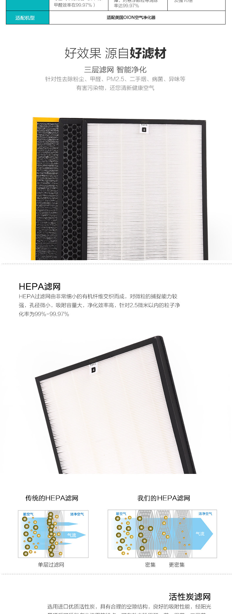适配美国oion空气净化器过滤网除甲醛 除烟尘雾霾PM2.5滤芯hepa