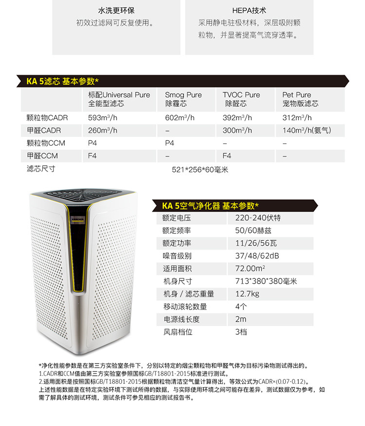 德国凯驰karcher智能空气净化器KA5除甲醛除二手烟除雾霾PM2.5