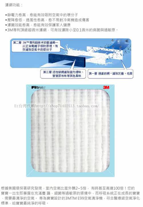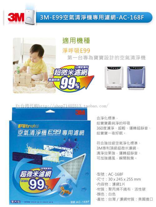 3M E99空气清净机滤网AC168F(AC168F)产品规格: