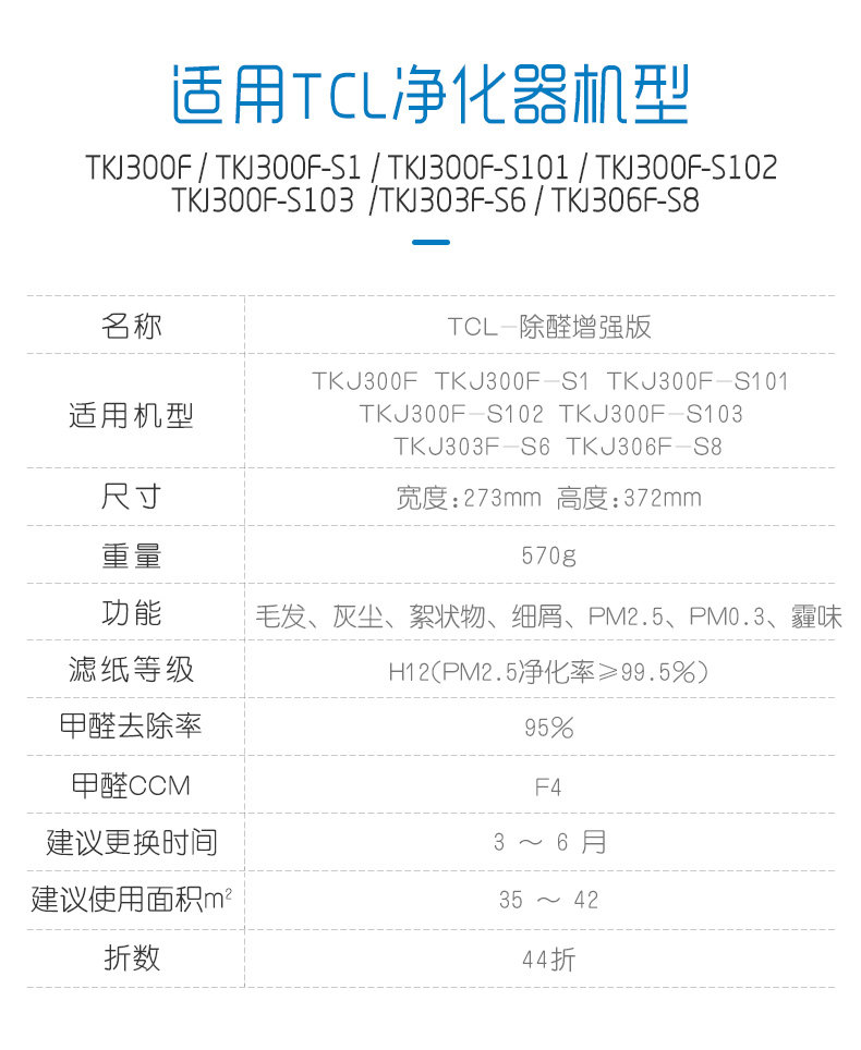 [takecare培康旗舰店净化,加湿抽湿机配件]培康适配TCL空气净化器滤芯TKJ3月销量0件仅售269元
