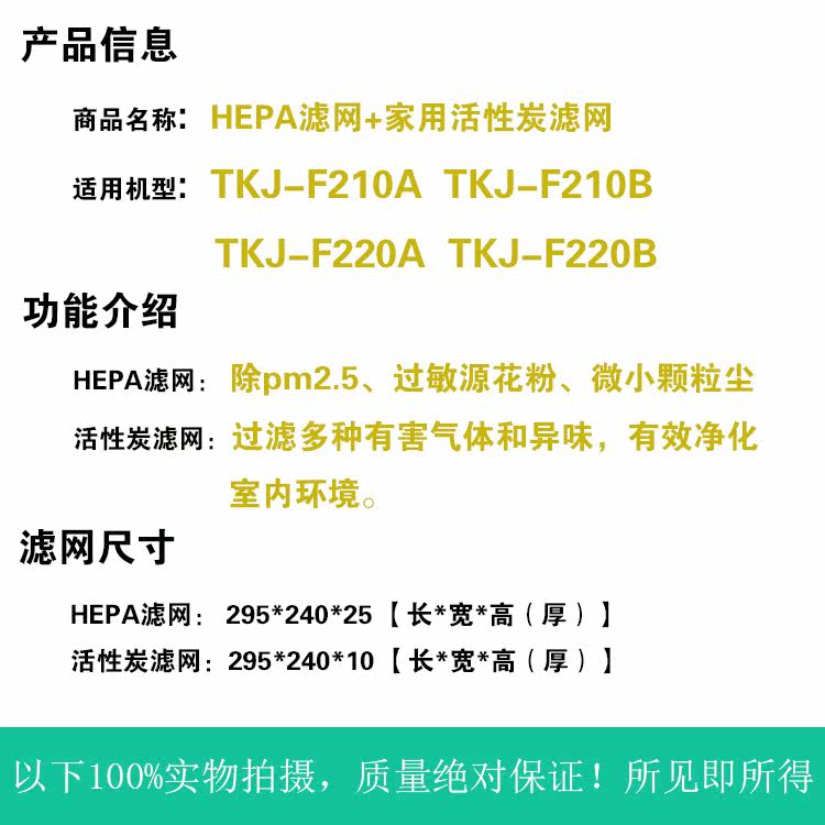 [绿净滤芯净化,加湿抽湿机配件]适配TCL空气净化器F210B过滤网月销量0件仅售48元
