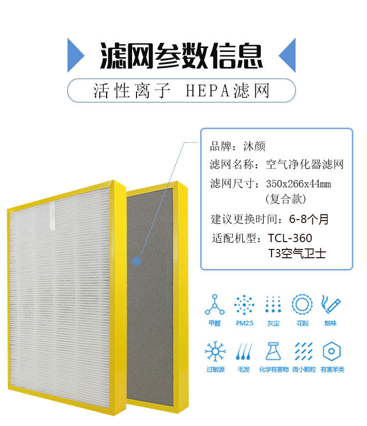 沐颜 适配TCL空气净化器过滤网滤芯TCL-360 T3空气卫士复合套装