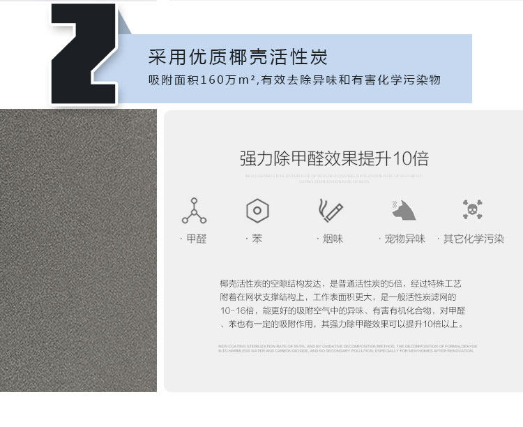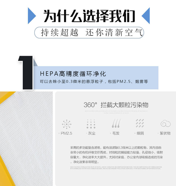 • 产品功能:除PM2.5、甲醛、雾霾等。