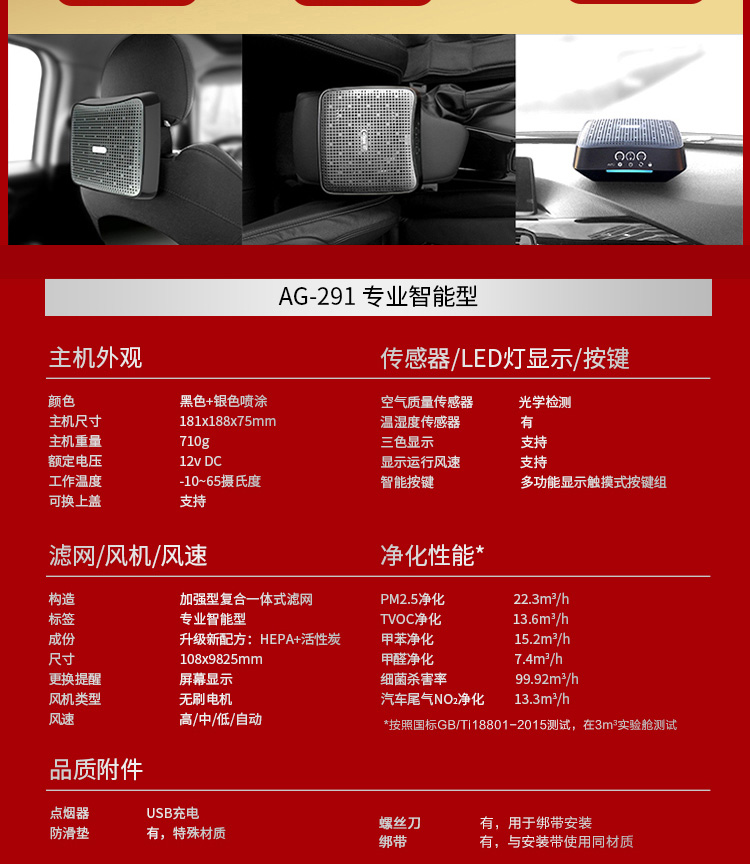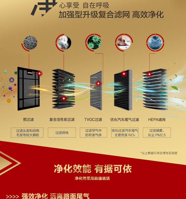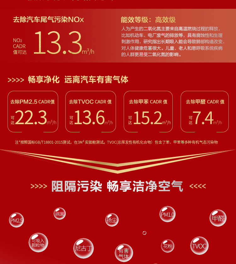 • 功能:消除异味过滤灰尘杀菌吸收TVOC气体