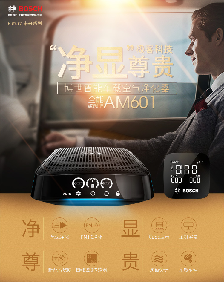 BOSCH博世车载空气净化器智能车用除甲醛异味烟雾霾过滤灰尘PM2.5