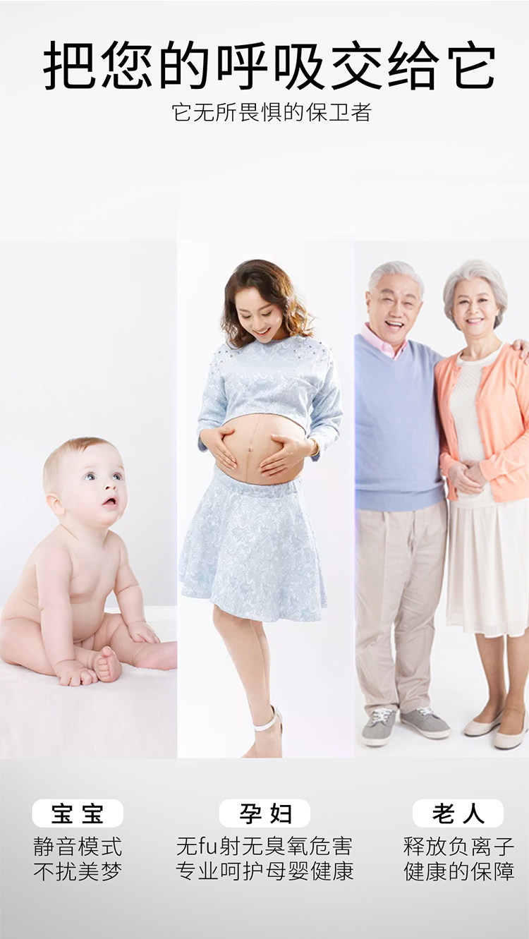 • 功能:定时 除花粉 除甲醛 除烟除尘 除雾霾 除菌, 负离子 除菌