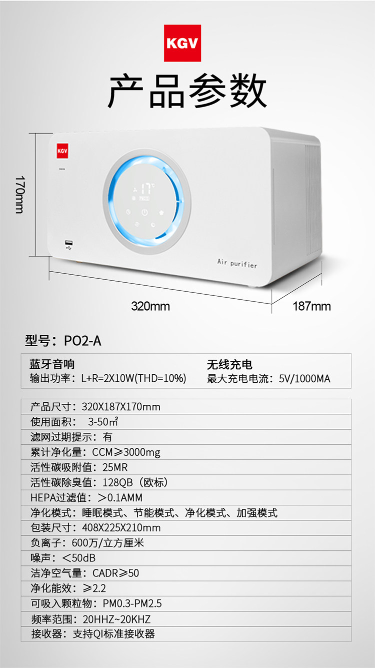 [kgv快购空气净化,氧吧]kgv智能空气净化器 家用无线充电除月销量1件仅售598元