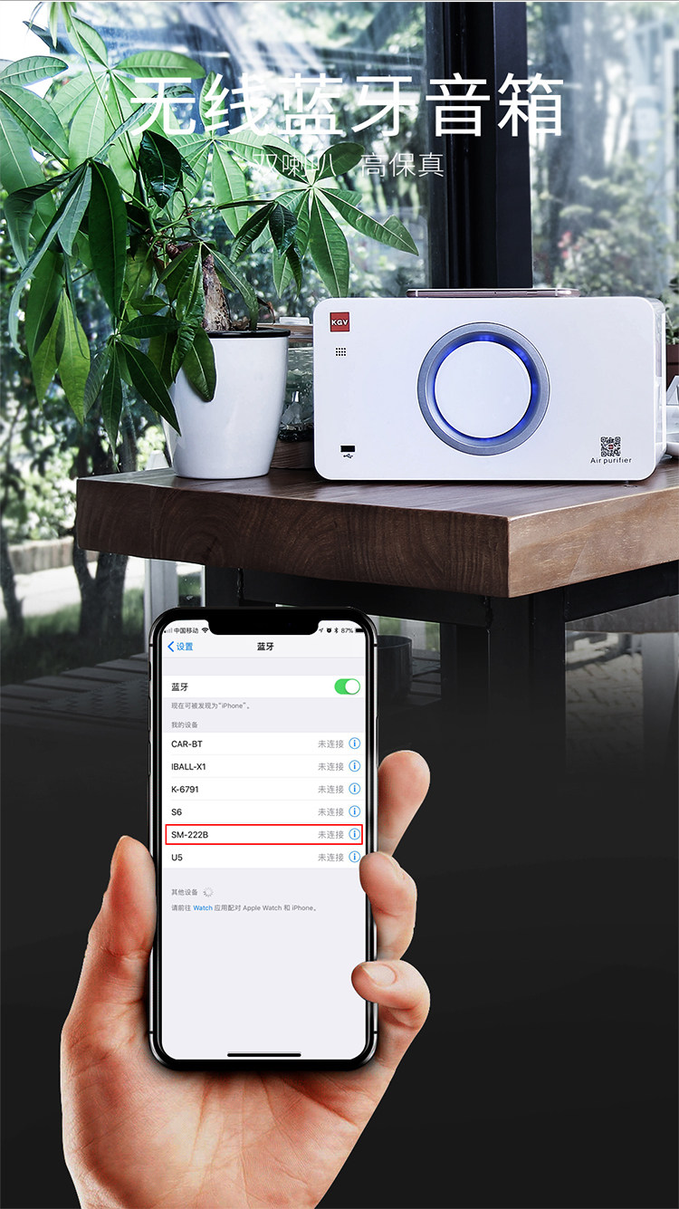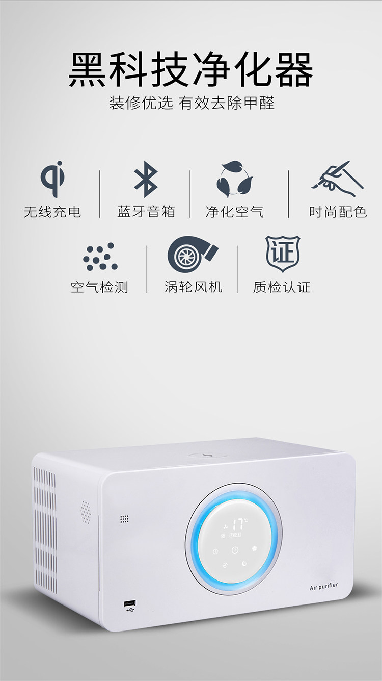 kgv智能空气净化器 家用无线充电除甲醛烟味负离子小型桌面蓝牙音