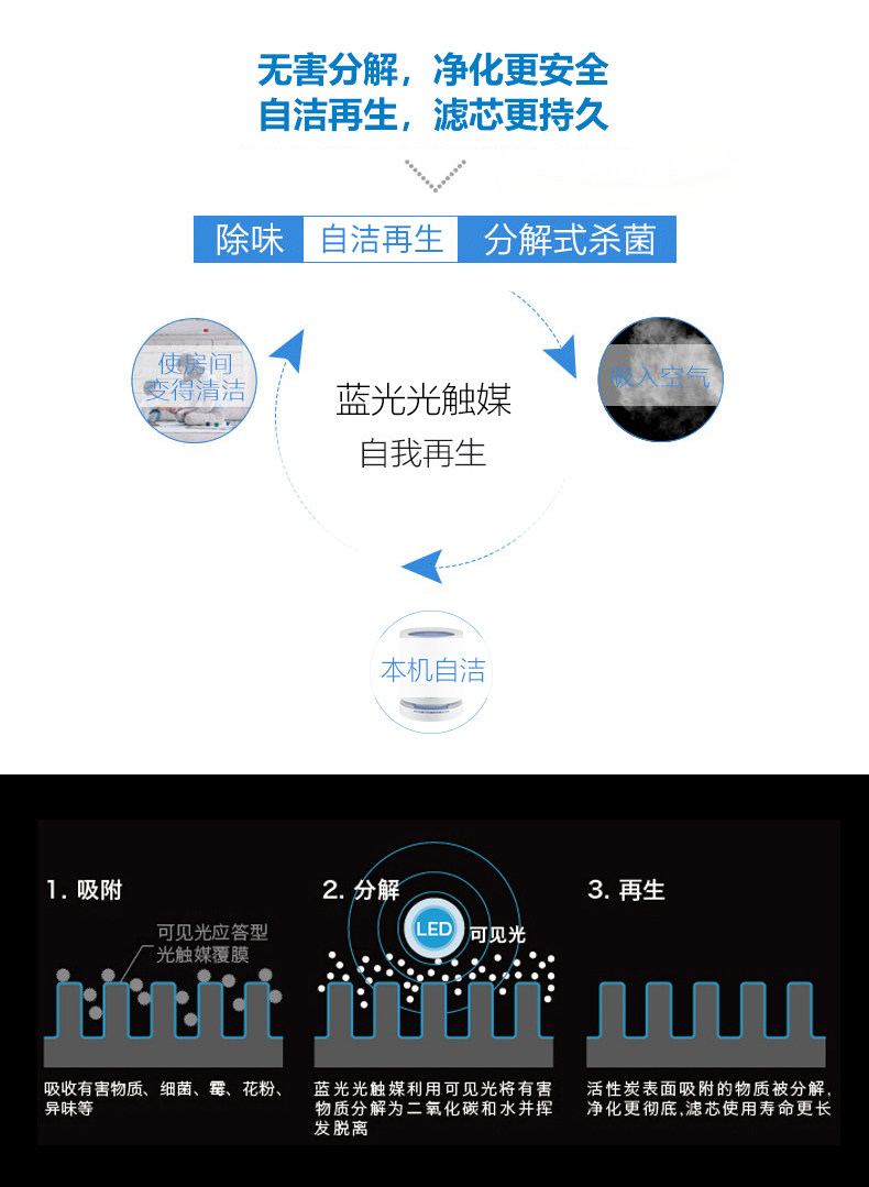 • 功能:定时 除VOC 除花粉 除颗粒物 除甲醛 除烟除尘 除雾霾 除菌