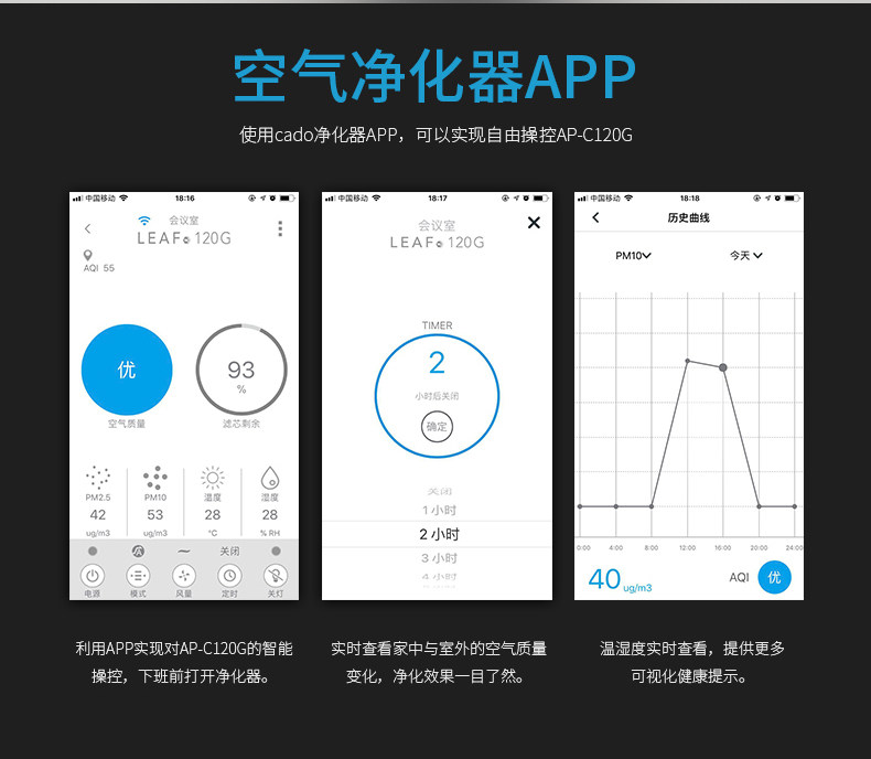 日本cado空气净化器C120G 家用卧室办公室APP智能控制除甲醛pm2.5