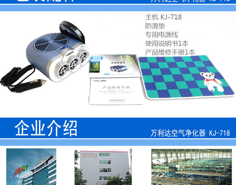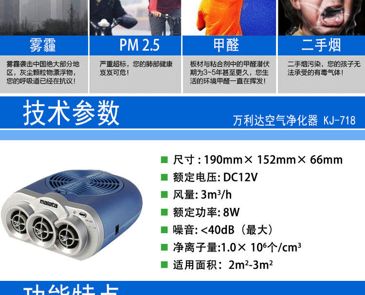 [尔尚电器企业店空气净化,氧吧]万利达KJ-718 空气净化器车载车月销量0件仅售398元