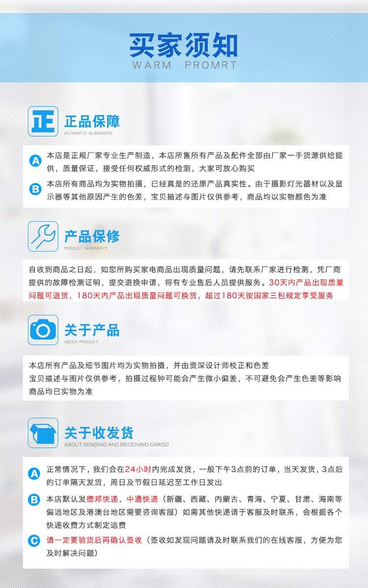 • 售后服务:店铺三包