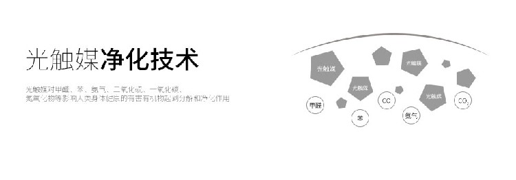 • 功能:消除异味 过滤灰尘 杀菌 吸收TVOC气体 芳香功能