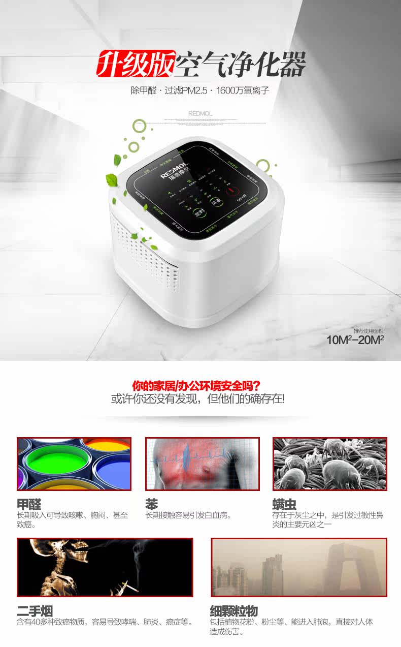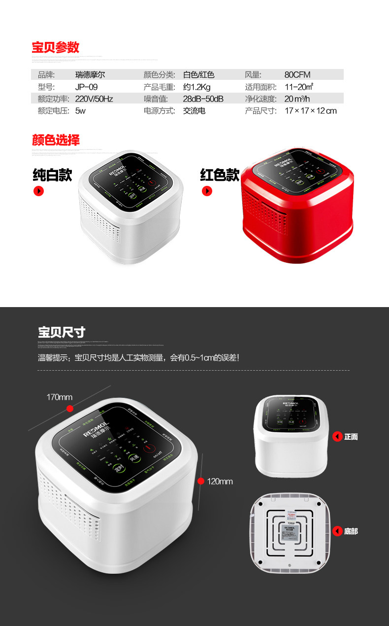 • 功能:定时 除花粉 除甲醛 除烟除尘 杀菌 加氧