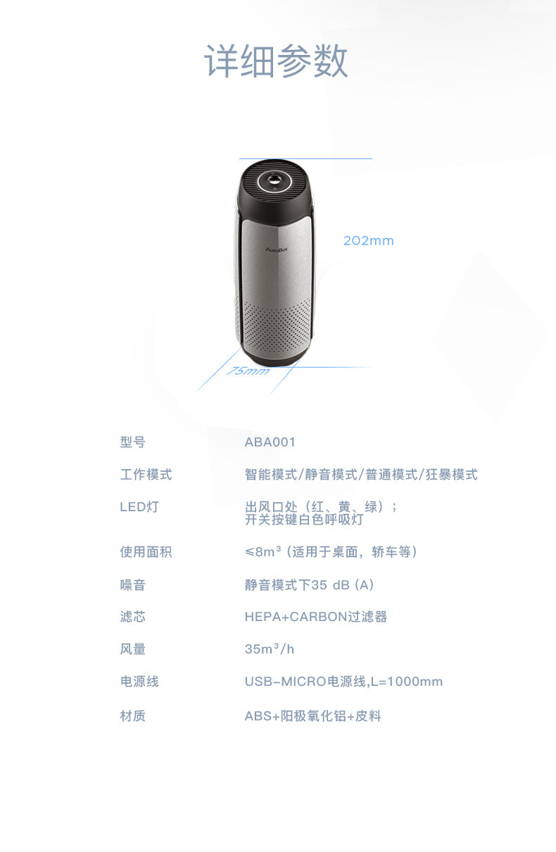 • 功能:消除异味 过滤灰尘 杀菌 吸收TVOC气体 芳香功能 加湿