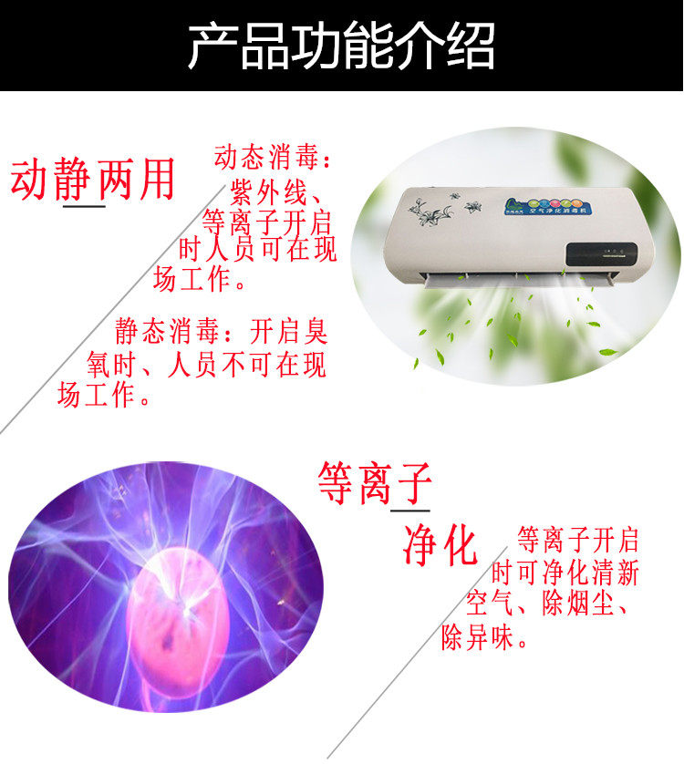 • 颜色分类:紫外+等离子 紫外+臭氧+等离子 挂式消毒空间40立方 挂式消毒空间100立方 挂式消毒空间150立方 移动柜式150立方 柜式消毒空间200立方