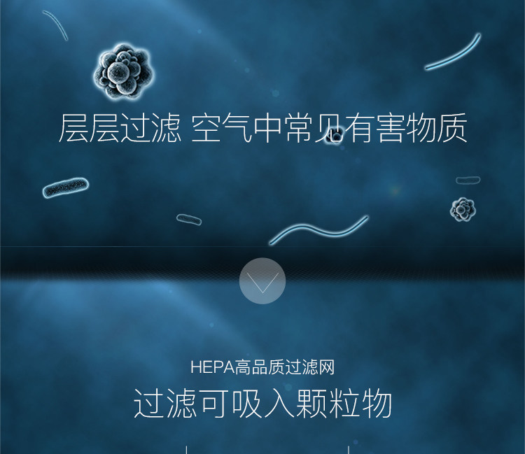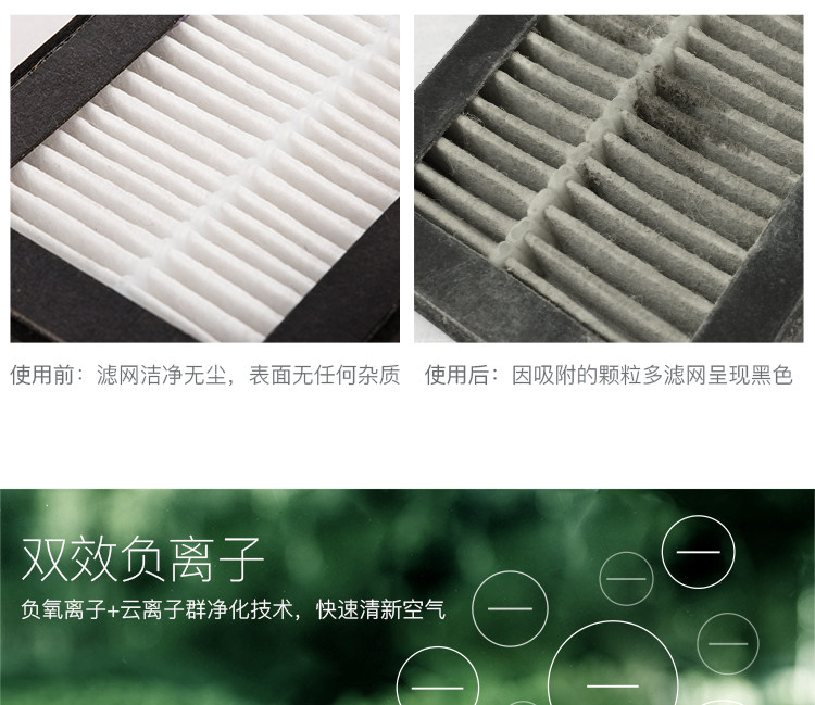 • 净化原理:HEPA滤网 活性炭 负离子