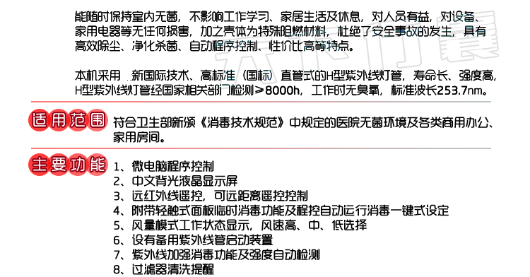紫外线消毒杀菌 除甲醛 除异味 除尘除烟 除PM2.5