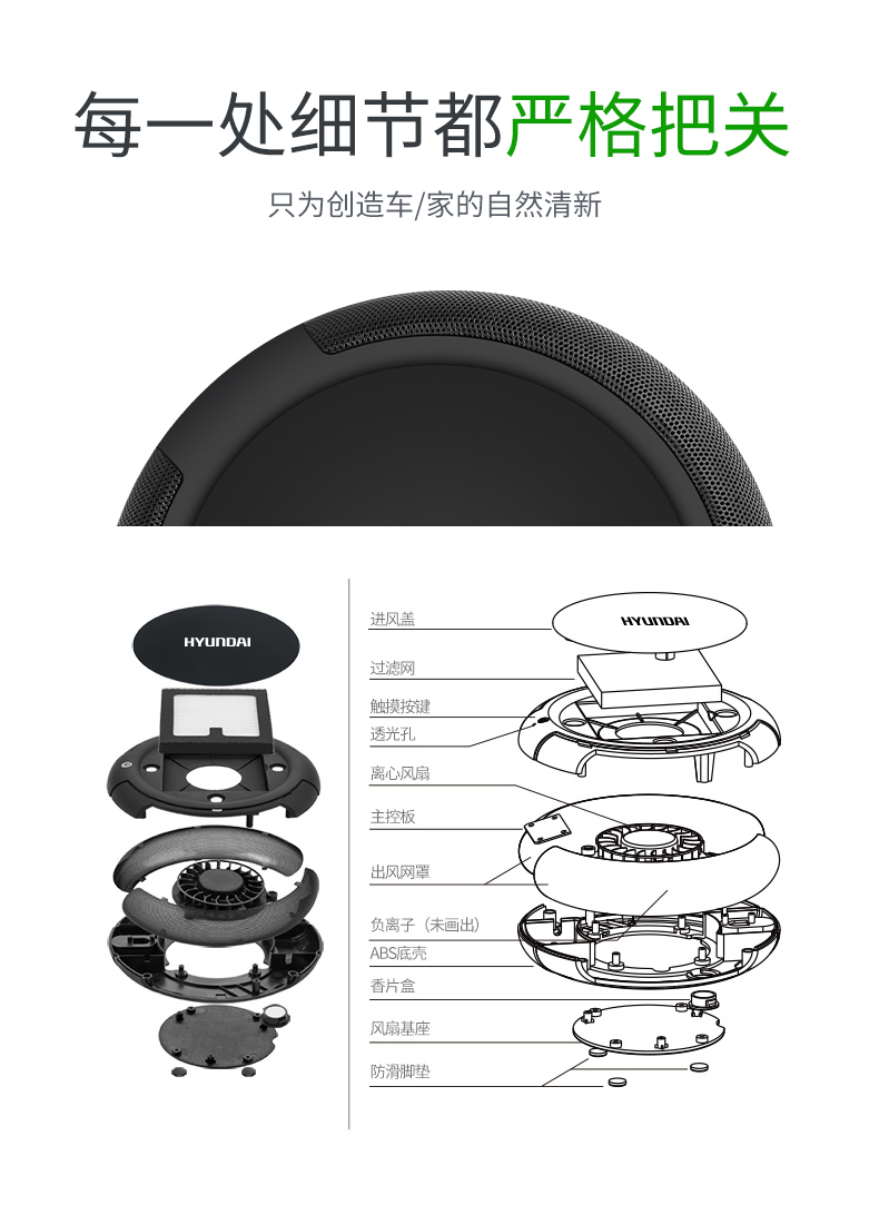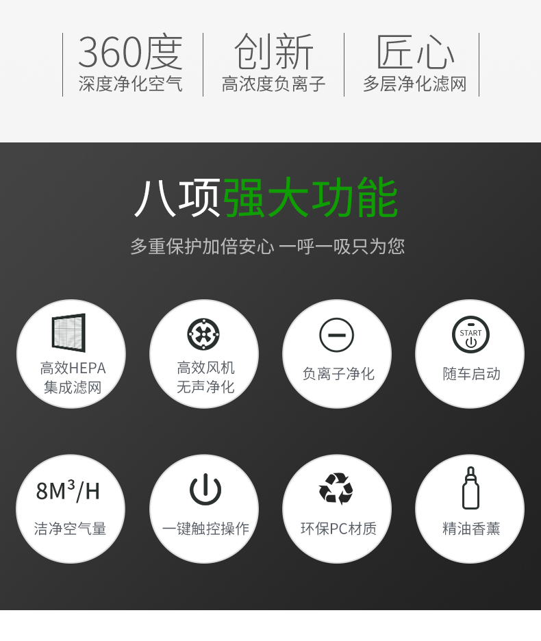 • 功能:消除异味过滤灰尘吸收TVOC气体芳香功能