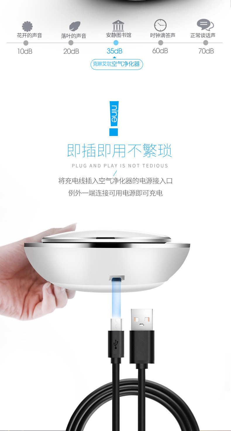 克琳艾尔车载空气净化器 USB车载电器礼品负离子空气净化器汽车氧