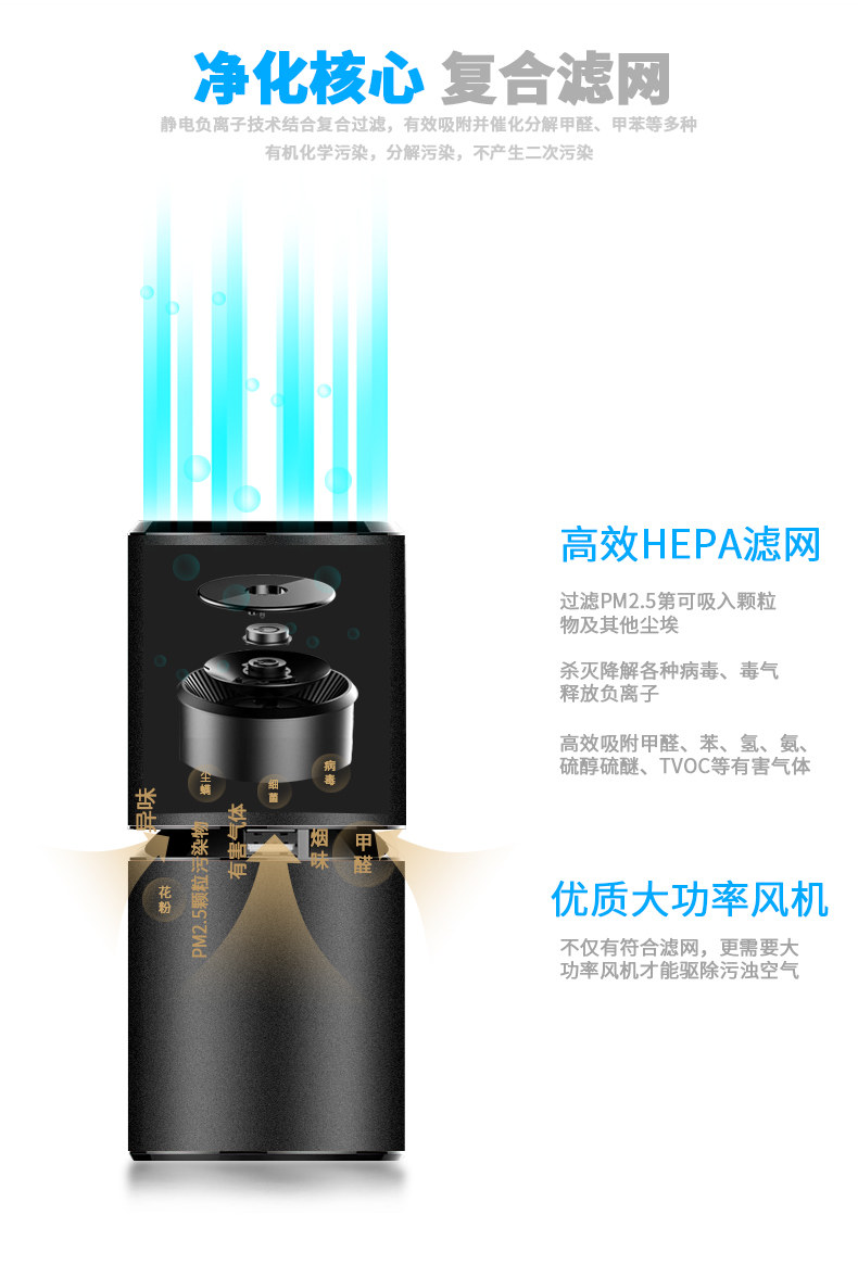 • 功能:消除异味过滤灰尘杀菌吸收TVOC气体