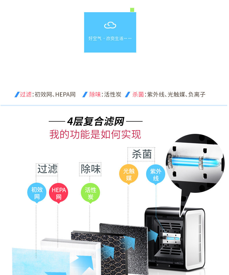 • 功能:除甲醛 除烟除尘 杀菌 加氧