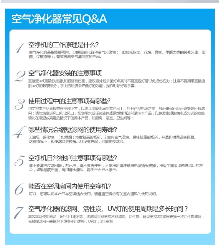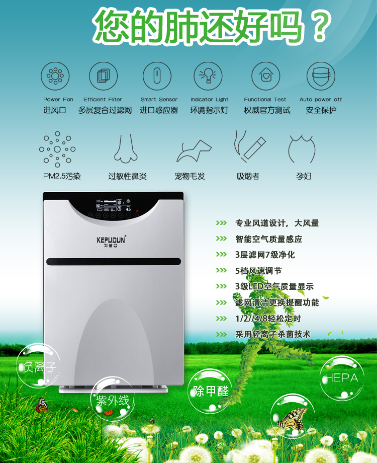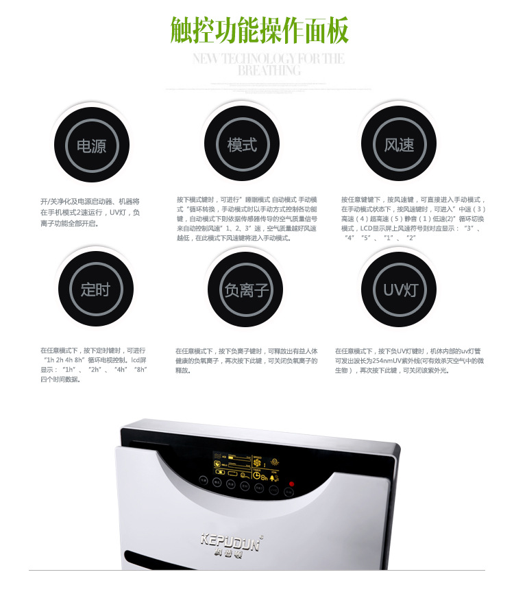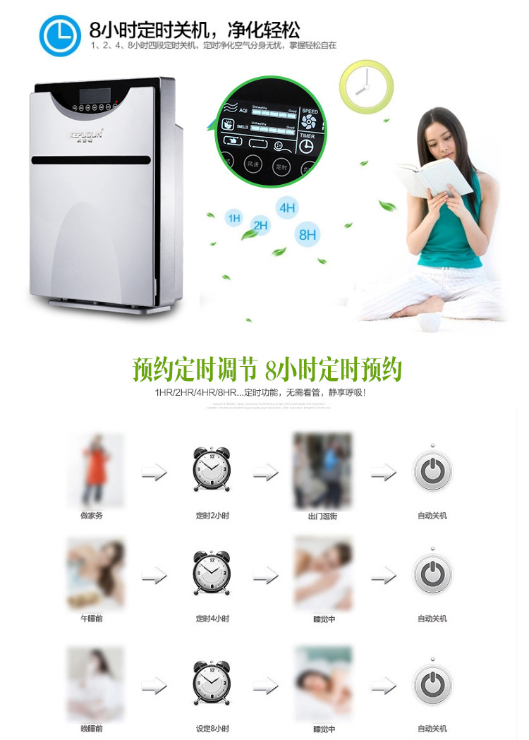 • 功能:定时除花粉除甲醛除烟除尘杀菌