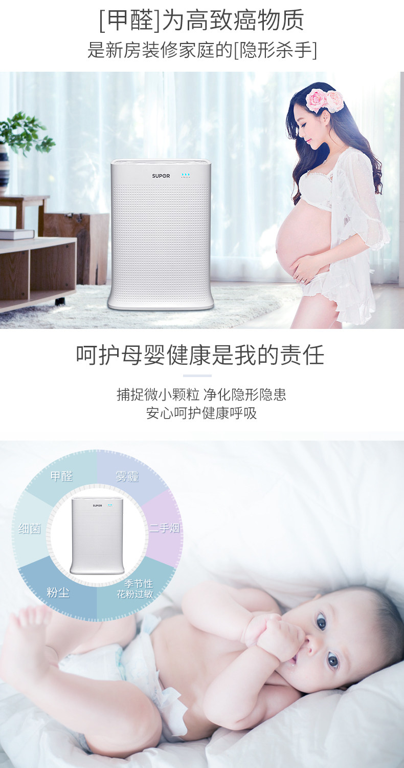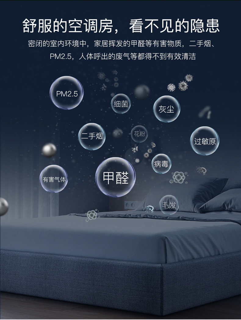 • 功能:定时除花粉除颗粒物除甲醛除烟除尘除雾霾除菌, 负离子除菌