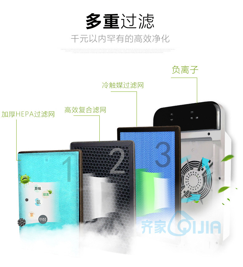 [斯信电器专营店空气净化器]齐家KJF-605 空气净化器PM2月销量2件仅售299元