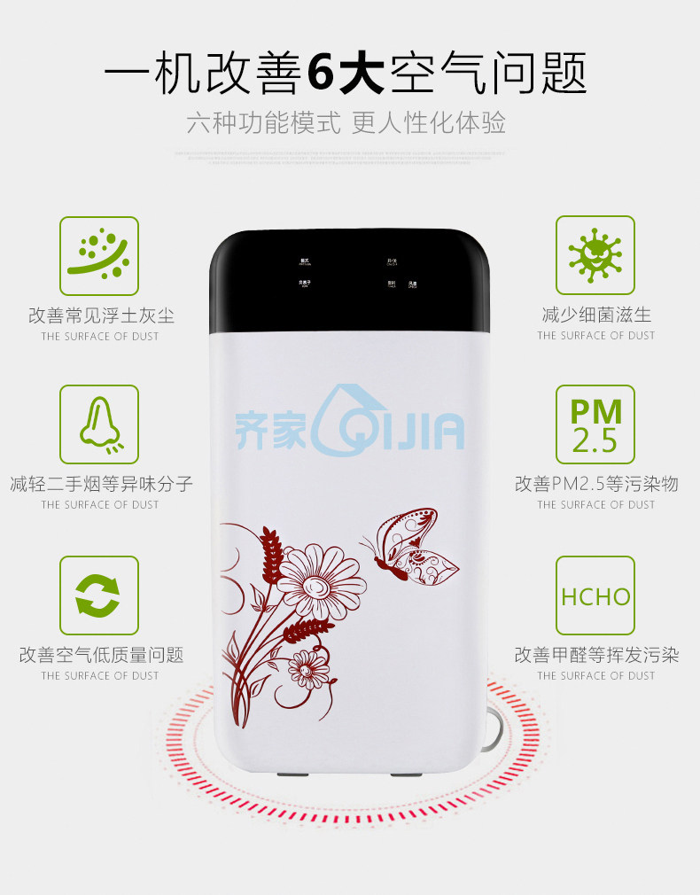 齐家KJF-605 空气净化器PM2.5除甲醛 烟尘 有害气体 静音 带遥控
