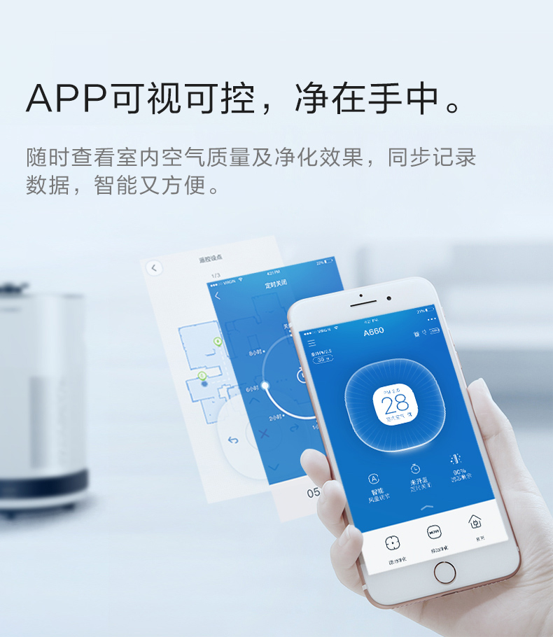 真心好用,手机APP就能实时查看空气状况,远程操控,回家前先看看,打开沁宝,回家就有新鲜空气啦。
