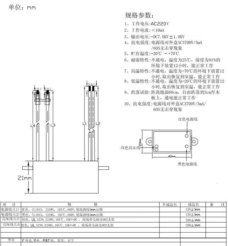 本产品释放量是1800万 每立方厘米的负离子个数,测试距离20厘米,输入AC220V交流电 输出DC7KV±1KV直流电 真实有效。