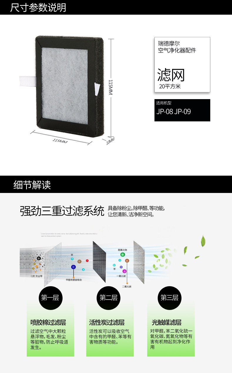 [云雾电器空气净化,氧吧]空气净化器滤网配件 三层复合式 滤网月销量6件仅售20元