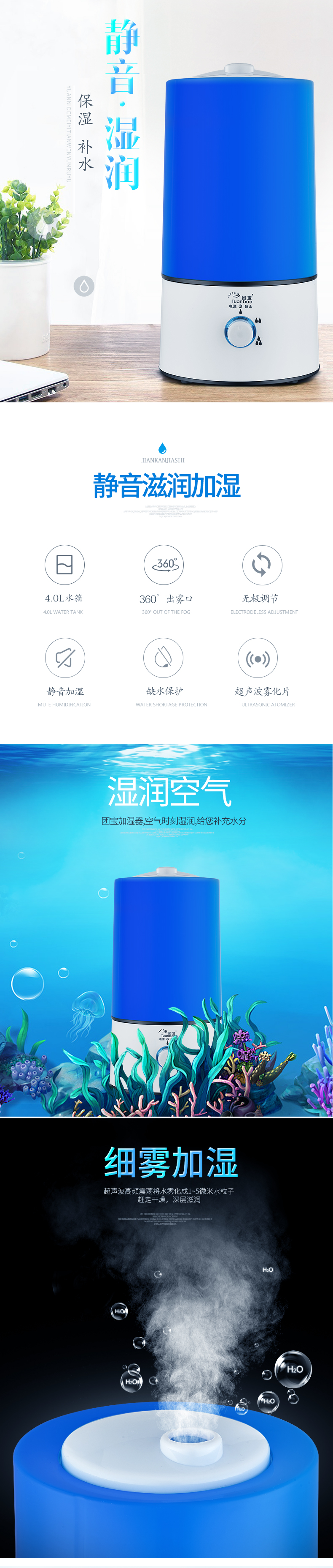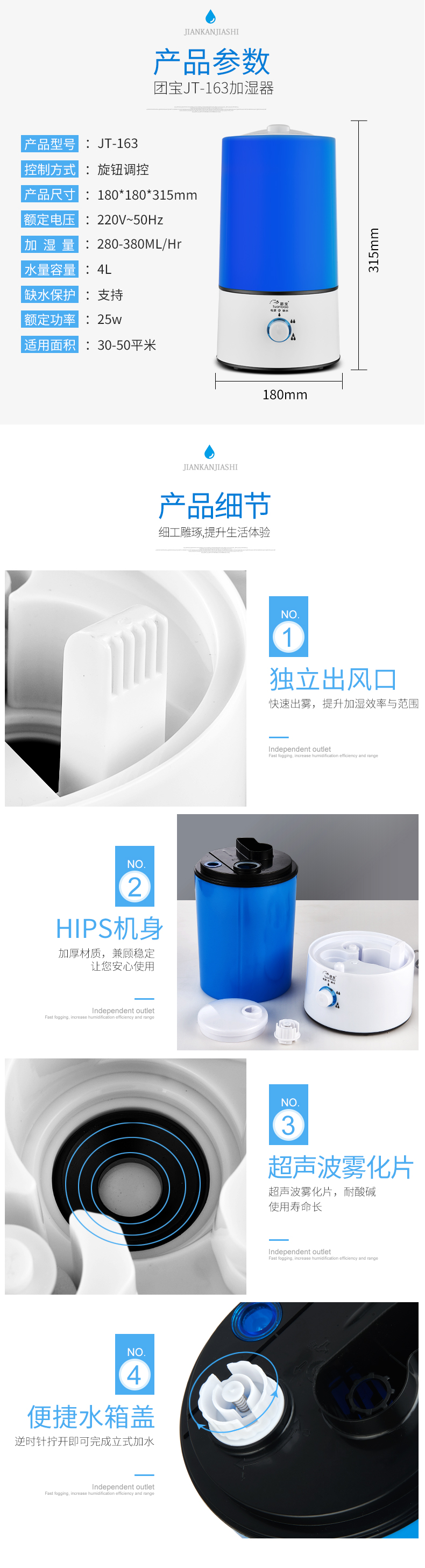 [团宝电器中山店加湿器]团宝JT163加湿器 卧室 大容量 月销量3件仅售49.9元