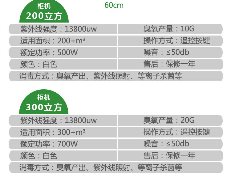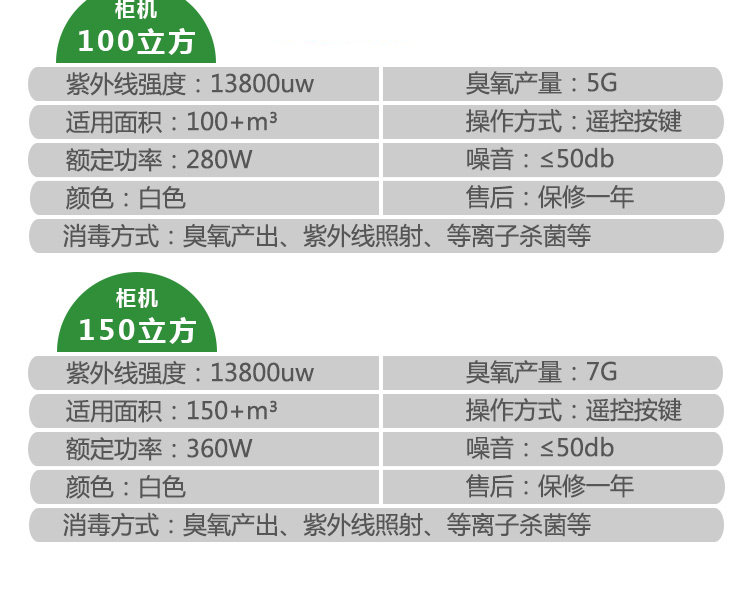 • 颜色分类:柜机100立方紫外线+等离子 柜机100立方紫外线+臭氧+等离子 柜机150立方紫外线+臭氧+等离子 柜机200立方紫外线+臭氧+等离子 柜机300立方紫外线+臭氧+等离子 壁挂40立方紫外线+等离子 壁挂40立方紫外线+等离子+臭氧 壁挂60立方紫外线+等离子+臭氧 壁挂100立方紫外线+等离子+臭氧 壁挂150立方紫外线+等离子+臭氧