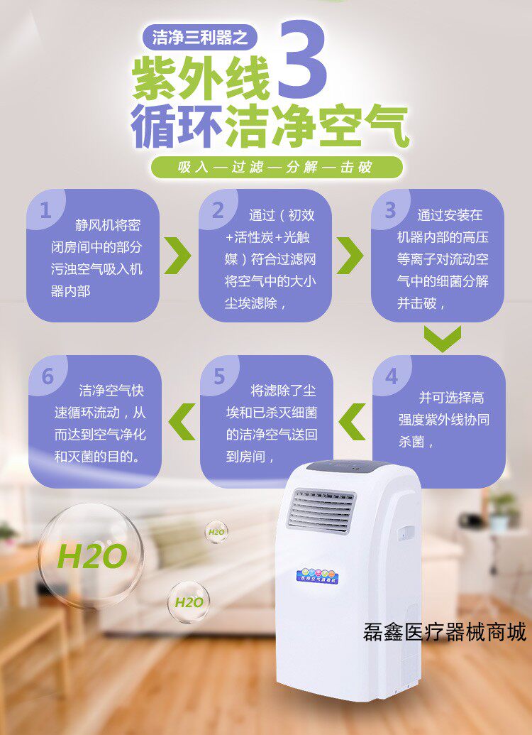 [磊鑫医疗器械商城空气净化,氧吧]移动式空气消毒机臭氧紫外线杀菌等离子月销量14件仅售880元