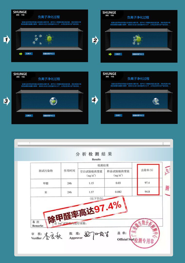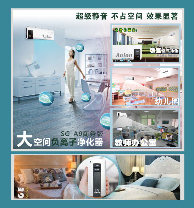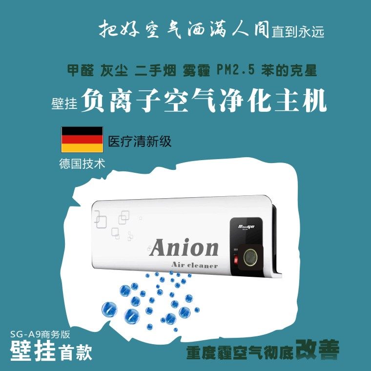 清新空气、消烟除尘:带负电荷的负离子与漂浮在空气中带正电荷的烟雾粉尘进行电极中和,使其自然沉积。