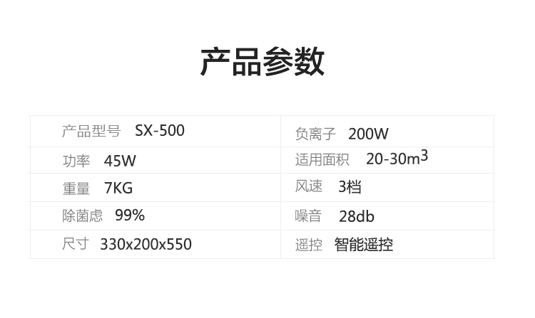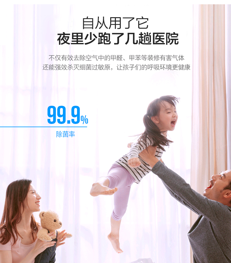• 功能:定时 除VOC 除花粉 除颗粒物 除甲醛 除烟除尘 杀菌 除雾霾