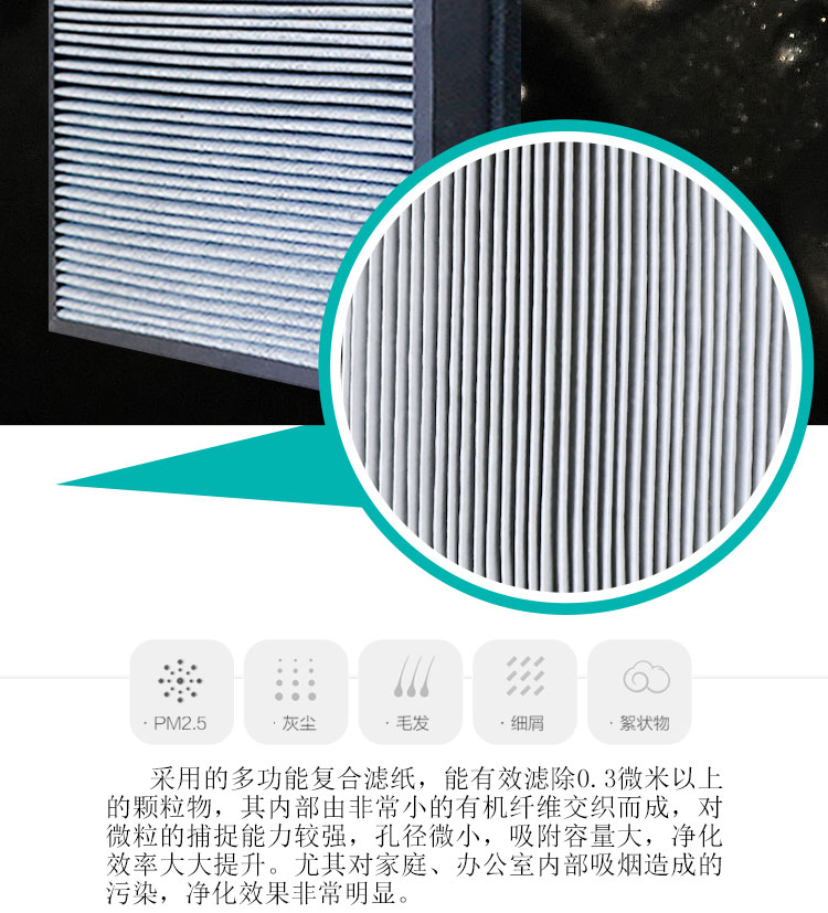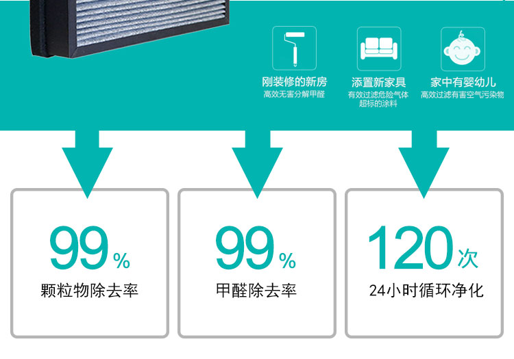 • 产品功能:除甲醛、PM2.5、除烟除尘、除雾霾