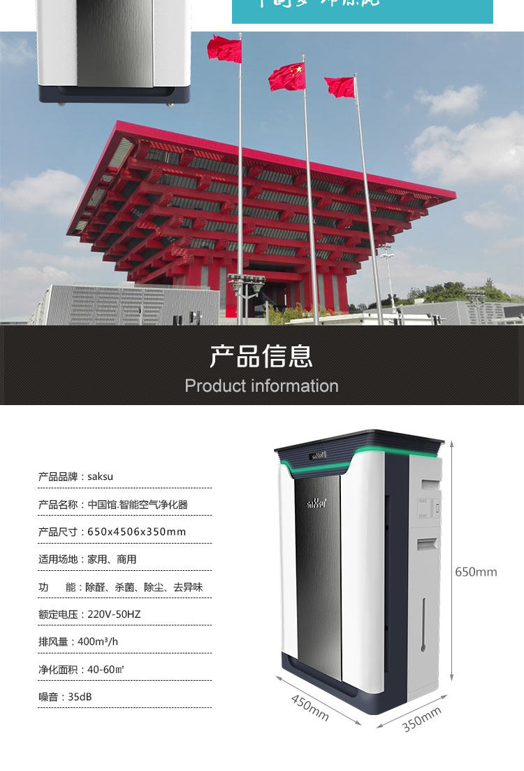 • 空气净化器风量:400 立方米/小时