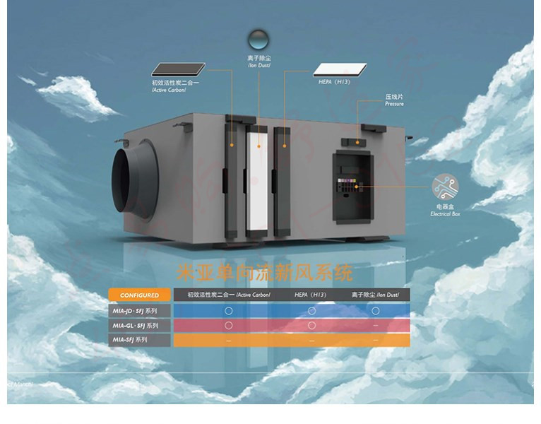 米亚新风系统家用空气净化器除甲醛除湿单向流净化一体机管道式